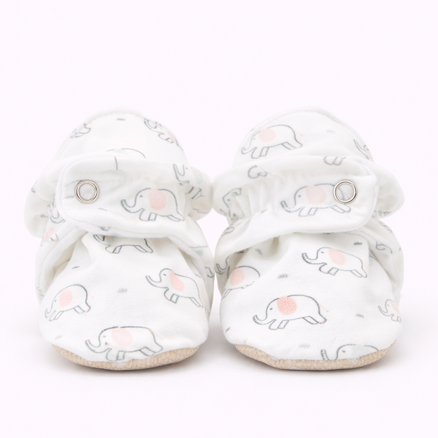 White Elephant Print - Baby Booties That Stay On with Non-Slip Soles | Snugabugz