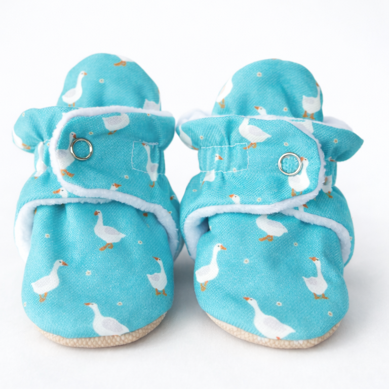 Our innovative stay on design ensures that your baby's booties stay where they belong - on baby's feet!